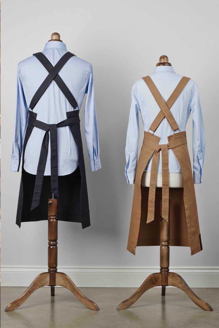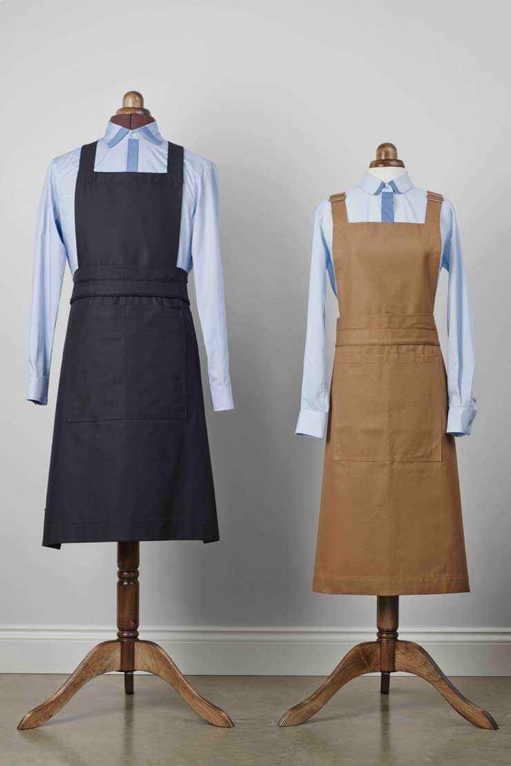 The Uniform Studio designed a uniform that made the wearers feel at ease. The use of khaki cotton drills creating a smart but rustic feel alongside light blue chambray shirts to give a crisp and clean finish. We created an easy and swift change in uniform so they worked in the more formal surroundings of the Members club. We only switched the fabric of the aprons only - ensuring continuity of design.