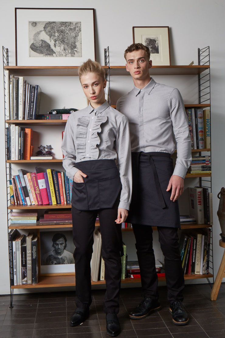We carefully selected fabrics that would allow the tailored fits of the garment to do their job. We then added stand out touches such as the contrast panels on Macs and a detachable bib on the ladies blouse.