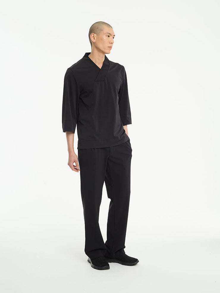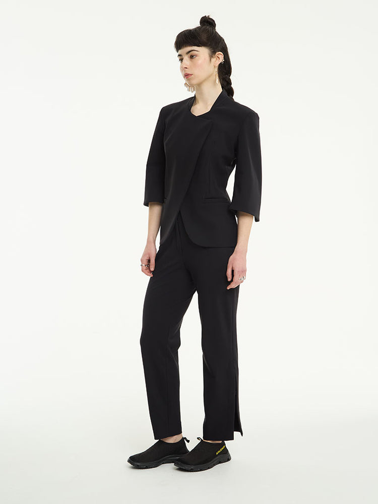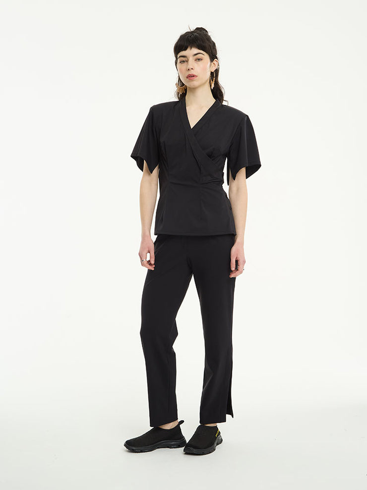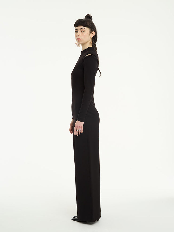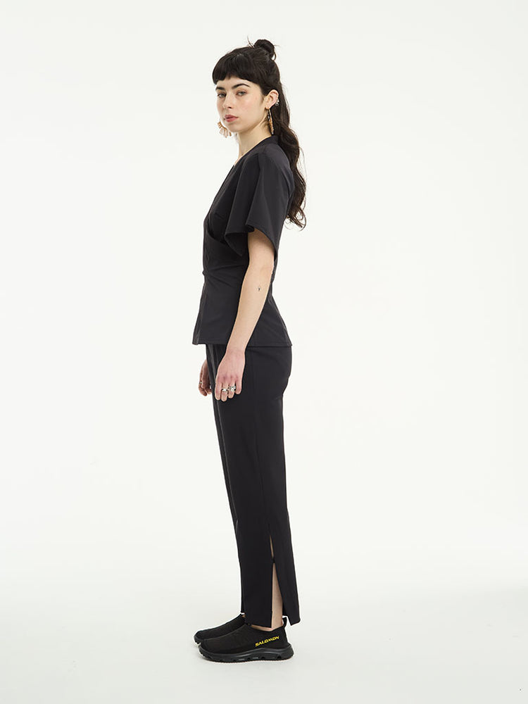 For this we wanted to play on the meaning of the name Komorebi (Dappled light) so included cut-outs, pleating and texture to provide the feeling of light coming through and shadows from depth. Using breathable technical fabrics lent itself to a modern and clean finish alongside leather pouches + pleated skirt panels for the prefect textural contrast.